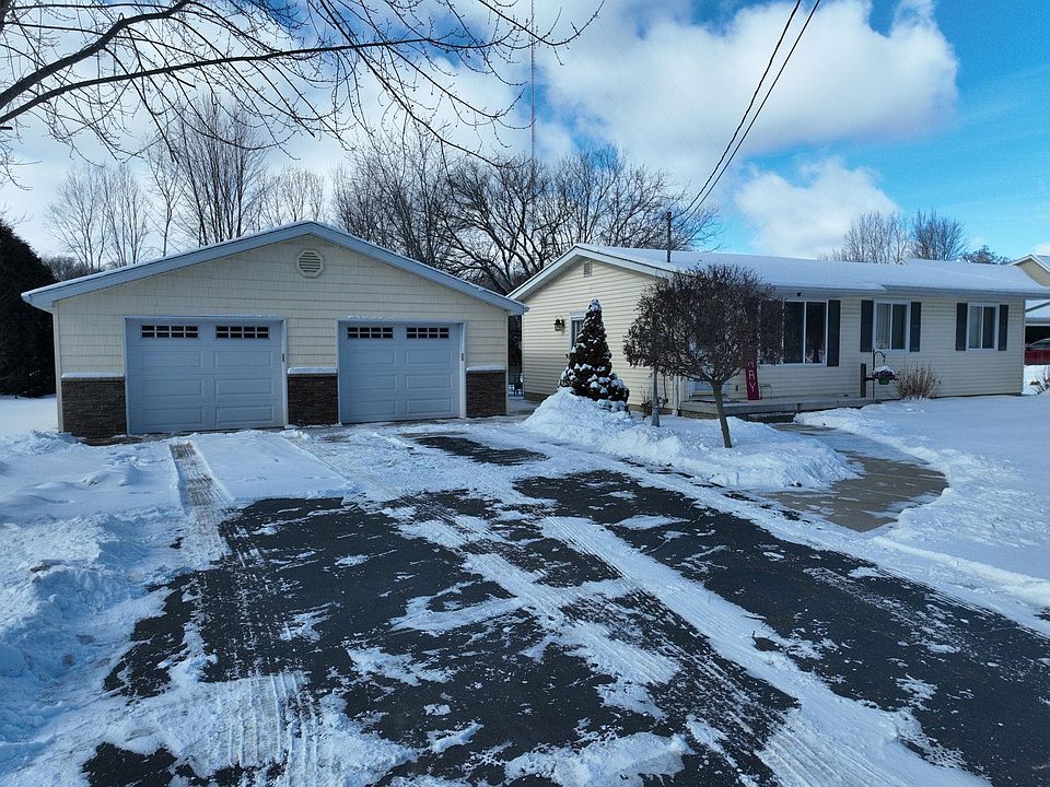 HIGHEST AND BEST DUE BY 2-12-24 BY 3pm Turn key ranch in Clio! Clean, neat and neutral. Move in condition. 3 bd, 1.5 bath, full finished basement, .75 acre yard, and a 4 car insulated garage. Beautiful hardwood floors, tiled kitchen, shiplap walls, and both bathrooms new. All appliances stay. Primary bedroom finished in knotty pine (super sharp). Central air, large party patio for grilling and chilling on those summer nights. Finished basement has extra space for those party nights, also a cool poured cement bar top and table (custom). 4 car garage is perfect for wrenching and offers plenty of storage options as well. Located central to all Clio amenities. Turn key clean ranch perfect starter or downsizer home!
