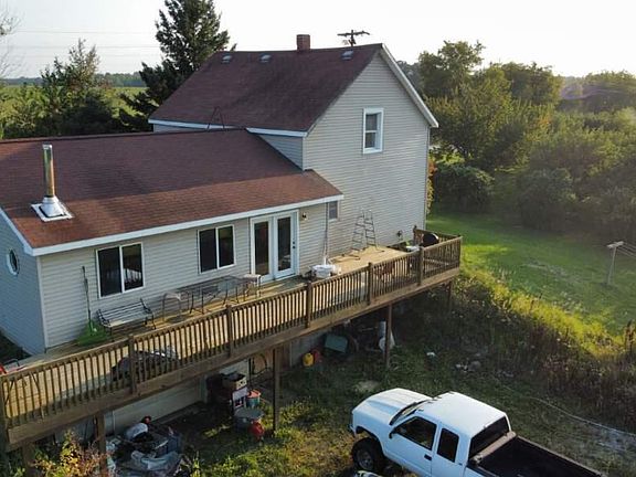 Welcome to this charming 1940 farmhouse with 2,000 sq. ft., including a spacious Great Room. Upstairs, find 2 bedrooms and a full bath, while the main floor features a large bedroom and another full bath. The Great Room has laminate flooring in the dining area and carpet in the entertaining space, complete with a wood stove. A glass door opens to a deck overlooking 5+ acres of rolling land and a stocked pond with bluegill, sunfish, and bass. The property also boasts 17 apple trees, a cherry tree, and a grapevine trellis. Though it needs some updates, it's a wonderful place to create lasting memories!