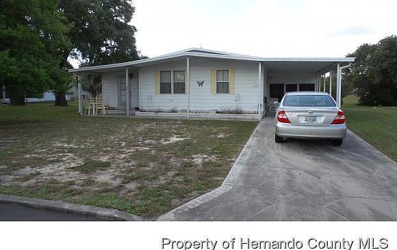 Come live in the premier manufactured home community on the west coast of Florida (see Brookridge.com). Located in beautiful Hernando County, top notch medical facilities are local and you would only be 45 miles north of Tampa. This 2 bedroom/2 bath double wide(1152 sq. ft. living/2253 sq. ft. under roof) on a 60 x 100 lot with an adjoining 60 x 100 partially treed lot (like having your own park next door). In overall good shape (new a/c 2008, roof over 2003). Some TLC needed. With very little effort this is a home you'd be proud to own. Highly motivated seller out of state. Partially furnished....furniture negotiable. Golf cart garage.