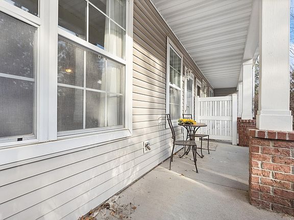 Cozy townhome located along a boulevard lined with trees. The natural canopy