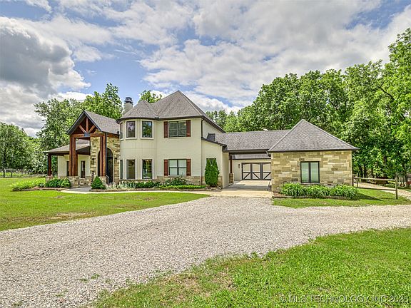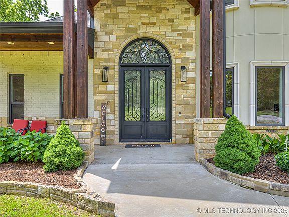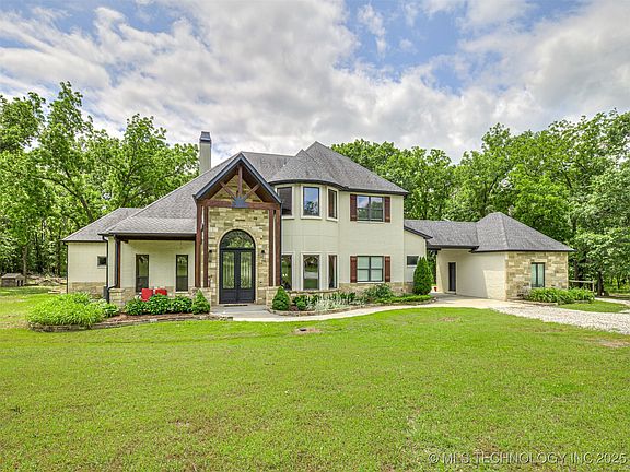 LIVE THE DREAM! Amazing custom-built executive home with fantastic, flexible floor plan on 10 acres, secluded, partially-wooded acres boasts tons of upgrades and unique details! Stunning entry with soaring ceiling and graceful curved staircase gives way to a formal dining room with impressive millwork and huge living room with stone fireplace, coffered ceiling and brilliant natural light -- perfect for entertaining a crowd! Chef's kitchen boasts professional stainless steel appliances, beautiful quartz counters, an enormous center island, galley sink and HUGE pantry with tons of storage and counter space! Sunny breakfast area. Neat wine room with iron doors, counter and fridge. Primary suite down features a big bedroom with tray ceilings, French doors to patio, spa-like bathroom with freestanding, jetted soaking tub, split vanities, large shower and AWESOME closet with custom built-ins and floor-to-ceiling shelving! Coveted mother-in-law suite down has a great closet and private bath with a large shower. Mudroom with storage and home office nook, plus giant utility room with tons of cabinets, island and planning desk. Bonus room upstairs has a wet bar with granite counter and space for a beverage fridge. Second story has two big bedrooms with excellent closets and a pullman bath with shower/tub combo and good storage. Spectacular, partially covered patio with room for multiple seating areas looks to wooded acreage and gorgeous fiberglass pool with waterfall feature and slide! Single detached garage with a mini-split could be an amazing home office, gym or guest room! Great attic space, central vac, indoor/outdoor Sonos sound system, storm shelter and so much more!