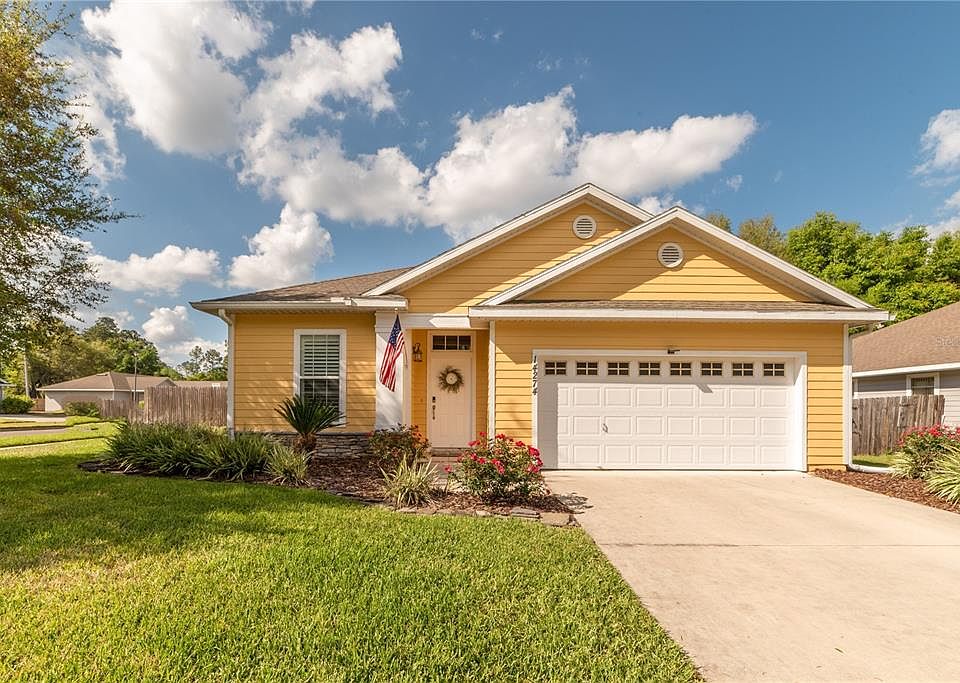 Looking for a move-in ready home? Then you'll love this 3-bedroom, 2-bathroom house situated in the beautiful Strawberry Fields neighborhood. This home has been beautifully maintained and features many upgrades that you'll surely appreciate. The home boasts of a NEW roof, an open floor plan, and distressed wood floors and tiles throughout the house (No Carpet). You'll also love the plantation shutters on all the windows, which provide a touch of elegance and privacy. The formal dining room can be used as a den, office, or playroom, depending on your needs. The great room and primary bedroom come with tray ceilings with crown molding, providing a sophisticated look. The kitchen offers granite countertops, a glass tile backsplash, and stainless steel appliances. You'll enjoy preparing meals and entertaining guests in this beautiful space. When it's time to relax or entertain, step into the backyard oasis. The covered patio, gorgeous landscaping, pavers, fire pit, and irrigation system create a peaceful and serene atmosphere. Location is everything, and this home has it all! Situated in a prime location with quick access to I-75, you'll enjoy easy commutes to work and play. The home is also conveniently located near Publix, restaurants, Jonesville Park, and the Town of Tioga, offering you endless opportunities for entertainment, shopping, and dining. Experience the best of both worlds with this stunning home in a coveted location. Don't wait – schedule a viewing today and start living the life you deserve!