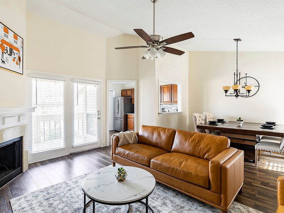 Communal poolStainless steel appliancesGranite countertopsEat-in kitchenVaulted ceilingLeather couches