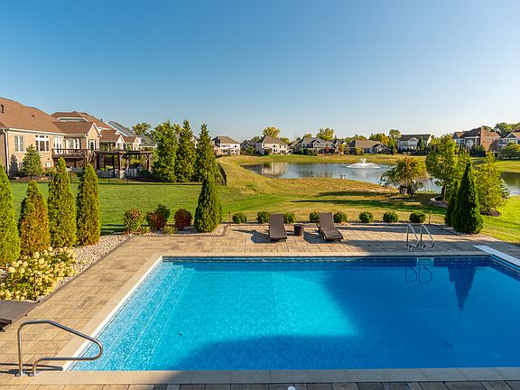 Welcome to this beautifully designed custom home offering 5 bedrooms and 5 baths in the heart of West Carmel. When you step outside, you will find a private outdoor oasis - complete with a sparkling pool, firepit, and stunning pond views - perfect for entertaining or simply enjoying a quiet evening at home. From the moment you step inside, you'll be greeted by a gorgeous entryway with access to the formal dining room and a private office. The main floor features a luxurious primary suite with serene views of both the pool and lake. The spa-like primary bath is filled with natural light and includes a soaking tub, separate shower, and dual walk-in closets. The great room boasts soaring ceilings and flows effortlessly into the gourmet kitchen and cozy hearth room - perfect for everyday living and entertaining alike. Fresh paint throughout gives the home a bright, updated feel. Upstairs, you'll find three spacious bedrooms with abundant natural light, two full baths, and a large loft ideal for studying or play. The finished lower level includes a bar, theater room, an additional bedroom, and plenty of space to relax and unwind. Plenty of storage space as well. We hope you can enjoy the shade of the pool both in the morning and at night. Welcome home!