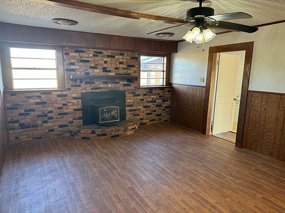 Wood burning fireplaceCar portRemodeled bathroomsCeiling fansCentral air and heatBay windowsUp on a hill