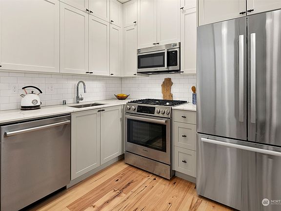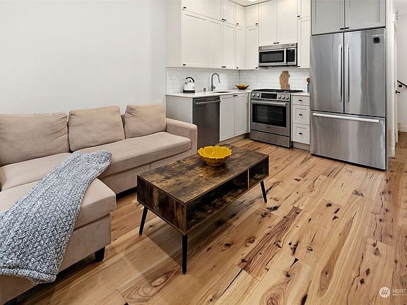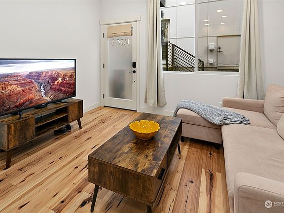 Step into the urban oasis designed for effortless modern living. The expansive windows & opaque glass door flood the main floor with natural light throughout. Revel in the combination of engineered hardwoods on the main floor & plush carpeting in the bedrooms. Each bedroom comes complete with its own private bathroom, offering convenience & privacy. This property boasts low-maintenance landscaping, generous cabinet space, & an expansive roof deck with stunning northeast views of Lake WA. The location is unbeatable, with an impressive 90 Walk Score, providing easy access to public transit, a plethora of parks, delightful eateries, inviting coffee shops! Eligible for B of A Grant program for down payment and closing cost assistance.