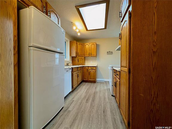 Beautifully maintained 1,000 sq ft bungalow nestled on a quiet street in Prince Albert’s East Flat area. Freshly cleaned and touched up with new paint, this home offers comfort, convenience. The bright kitchen features a stunning skylight that fills the space with natural light, while the fully finished basement extends your living area with a cozy family room, wet bar (2016), and in-floor heat in the bathroom with steam shower—perfect for chilly mornings. An insulated, heated double detached garage (built in 2008) includes a large concrete apron, ideal for extra parking or projects. Step outside to enjoy the spacious, tiered deck and fenced backyard—perfect for relaxing or entertaining. Recent updates include a brand-new stove (Aug 2025) and washer/dryer set (Jan 2025). This move-in-ready home is refreshed, spotless, and waiting for its next chapter!