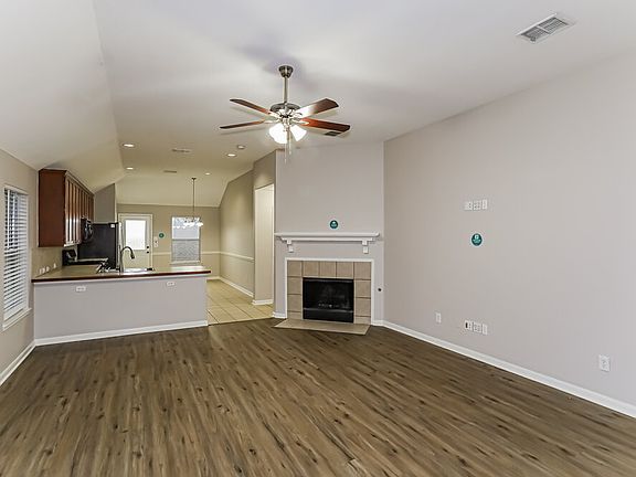 Come see this charming brick four-bedroom, two-bath rental home in Fort Worth. Entertain or spend family time in the spacious living room featuring a vaulted ceiling, easy-care vinyl plank flooring, and a fireplace. You'll love the tiled kitchen with a matching tile backsplash, lots of cabinets, a pantry, and a huge stainless steel fridge/freezer combo. The adjacent dining area features a charming chair rail and chandelier light fixture. A backdoor leads to a patio and fenced-in backyard. Don't forget to check out the master bedroom suite, or you'll miss a walk-in closet and a bathroom with dual-sink vanity, oversized tub, and walk-in shower. Other great amenities include a double-door two-car garage that opens to the laundry room.
