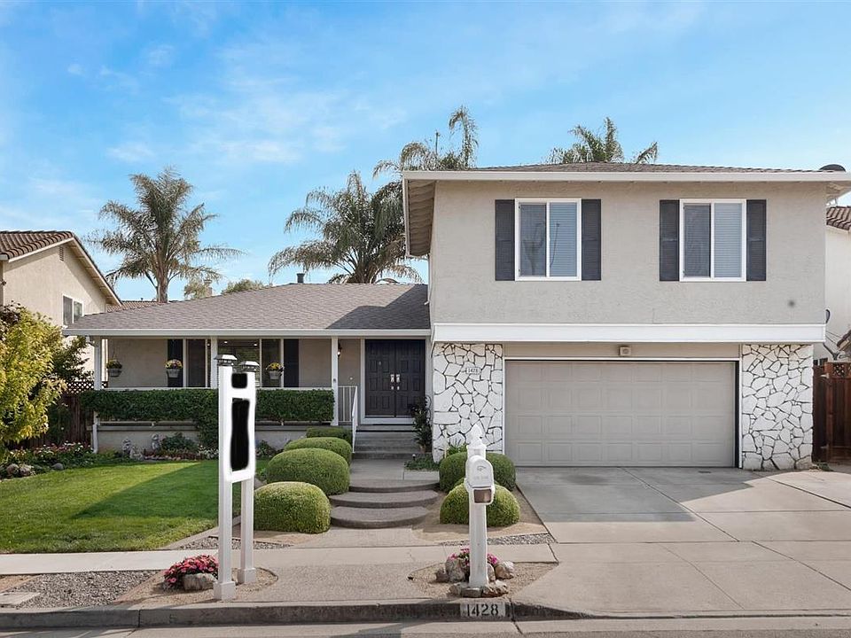 Stunning Tri-level home is situated in sought after Northwest Quad of Gilroy, with award winning Schools. Stunning new light and bright flooring throughout. Kitchen is 2 years new, boasts white cabinetry, granite counters, and newer stainless appliances. Family room features custom built in shelves, with lovely slider with built in blinds. Second story has 4 bedrooms with walk-in-closets. So many features, 3 year new roof, custom paint through-out, gorgeous recessed lighting, overhead fans in all bedrooms, newer windows, and whole house fan for those warm evenings. Room for home office or formal dining, Also large living area is perfect for home schooling/kids, of area for formal living room. Lots of options for individual needs. Back yard is private with mature palm trees, spacious patio, elevated deck overlooking in-ground swimming pool and spa with water feature, perfect for entertaining. Enjoy and RELAX in your private Hawaiian Oasis