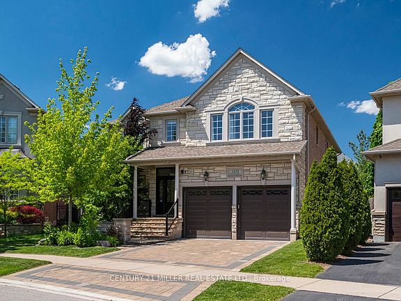 Welcome to this immaculate 4-bedroom, 4-bathroom home boasting a spacious 4,038 sq/ft above ground level, bathed in natural light. Situated on a large pie-shaped lot, the property features a fully fenced yard and an interlock driveway, offering both privacy and curb appeal. Step inside to discover hardwood maple floors, elegant wainscoting, and a stunning maple circular staircase adorned with wrought-iron balusters. The main level impresses with a formal living room complete with a gas fireplace, a private office, and an elegant formal dining room featuring coffered ceilings and a large bow window. The cozy family room, enhanced by another large bow window overlooking the backyard, seamlessly connects to the kitchen and dining area. This open layout creates an ideal space for hosting gatherings. The well-appointed kitchen, equipped with granite countertops, offers a walk-out to a private, pool-sized backyard with northern exposure and all-day sun. Upstairs, the primary bedroom is a retreat, featuring a 5-piece ensuite and a large walk-in closet. The main bathroom shares ensuite privileges with the second bedroom, which also boasts a walk-in closet. The third and fourth bedrooms are thoughtfully designed with a convenient Jack & Jill 5-piece bathroom and each have double-wide closets. The unfinished lower level, with a rough-in for an additional bathroom, provides a blank canvas for your own creative imagination. This executive home offers easy access to major highways, located in an excellent school district, local shopping centres, and endless trails and natural surroundings for those who love to enjoy the outdoors. Don't miss the opportunity to make this luxurious family home in Joshua Creek your very own!