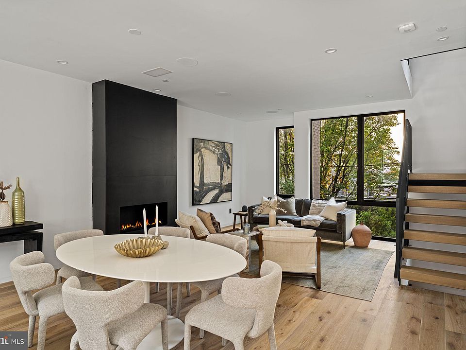 Gas fireplaceCity skyline viewsEn-suite powder roomBuilt-in steam shower systemMatte black soaker tubMiele appliancesSleek wood-grain cabinetry