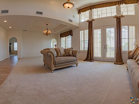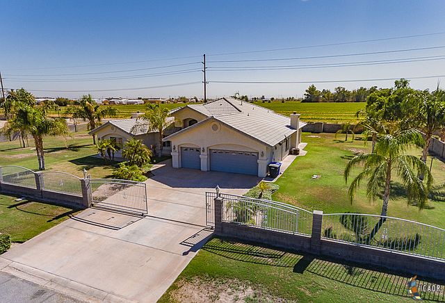 Custom home in gated community on nearly 1 acre! Freshly painted inside and out. Double door entry leads into the living room w/vaulted ceilings. Formal dining area has a coffered ceiling. Gourmet kitchen includes matching upgraded stainless steel appliances, high end cabinets & granite counter tops. 16 inch stone tile floors and plantation shutters throughout. Family room has custom fireplace. Two bedrooms and a full bathroom are located on the north end. On the opposite end of the home is a spacious 14x25 Master bedroom with custom fireplace, ceiling fan, double french doors leading outside and retreat w/separate full bathroom that can be converted into a fourth bedroom. Well appointed master bath features spa tub, double sinks & large walk in closet. Large patio with ceiling fans. Plenty of room for a pool on south side of house, 50' near fence.