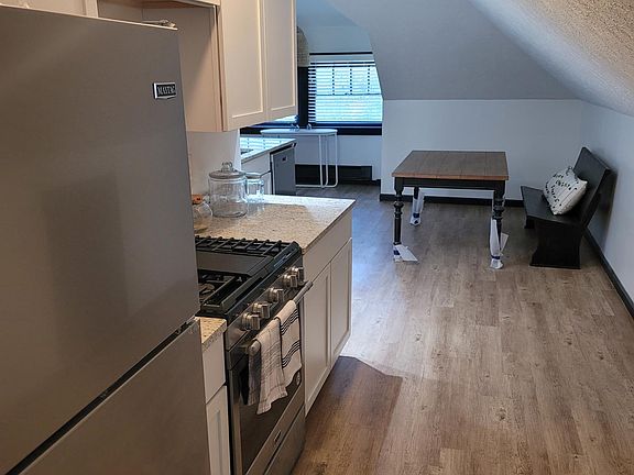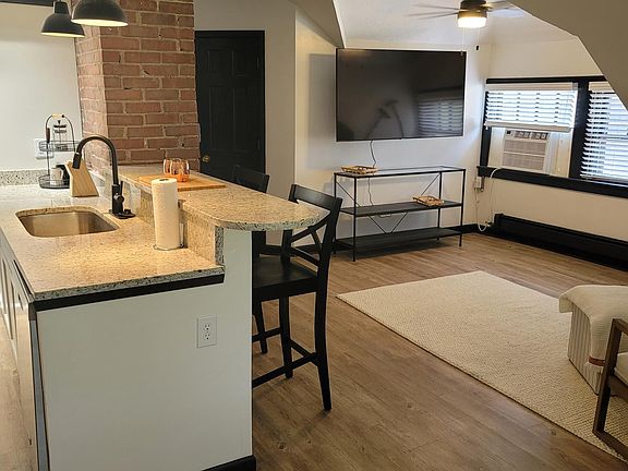 New fully renovated penthouse loft unit with new LVT flooring, appliances, cabinets, granite countertops, paint, and window coverings.
