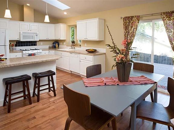 Idealistic Westside home in downtown Bend!. Open light and bright great room w/ vaulted ceiling and skylights. New birch wood flooring through main living room & hallway. Attached oversized alley entry double garage. South facing lot w/ wrap around wood deck & apple tree for shade. Partially fenced, low maintenance yard w/ front irrigation. Tile in bathrooms and laundry area.
