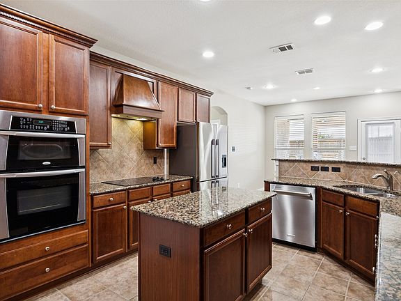 Desirable 1-story home in the popular master-planned community of Artesia. The builder's design brings elegance to the foyer with a rotunda highlighted by an exquisite chandelier. The secondary bedrooms share a wing, while the primary is more privately located towards the back of the house. Make note of the custom closet system in the primary suite and reverse osmosis system in the kitchen, features hard to find in homes of this size. There's a flex space which can easily be used as a 4th bedroom, guest room, game room, media room, or office. Enjoy time with friends and family on the back covered patio with stamped concrete and a built-in grill. Close proximity of all zoned schools makes drop off in the mornings a breeze. Come see!