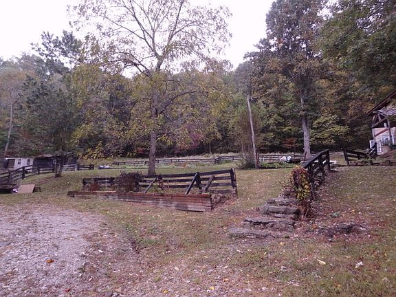 Unique custom-built home with both modern and country amenities! In addition to the 6 bedrooms and 2 baths, there is a bonus loft area upstairs (perfect study, office or sitting area), a large workshop space downstairs, and a great room with lots of windows to enjoy the beautiful views and let in lots of light. Check out the decorative tree trunk in the great room and hand-crafted tree shaped bannisters upstairs! Outdoors is a stone patio, 16 x 20 pole barn, and another small barn with a side shed. Surrounded by woods, enjoy the privacy and beauty of this special home!