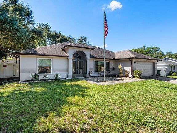 Spacious 3 bedroom home with separate office, on-site boat or RV parking (with 30 amp camper plugin), and corner lot charm…welcome to your new home! This beautifully maintained 3 bedroom, 2 bath split floorplan property offers the perfect blend of comfort, functionality, and modern style — all at an affordable price. Step inside to a bright, open floor plan with vaulted ceilings that create a sense of space and warmth. The heart of the home is the open-concept kitchen, featuring newer STAINLESS STEEL APPLIANCES, a large breakfast bar, and direct sightlines into the family room — perfect for entertaining or keeping an eye on little ones while you cook. Need a quiet place to work or create? A DEDICATED HOME OFFICE provides the ideal setup for remote work, hobbies, or study time. Additional highlights include: BRAND NEW AC UNIT (2025) with a 10-year transferable warranty; NEW EXTERIOR PAINT (2025); six new impact resistant windows (2019); interior laundry room for added convenience; ring security system for peace of mind; water softener system installed; TWO OUTDOOR DECKS, including a 330 sqft wood deck and a second deck with 220V power, ideal for a hot tub or workshop; backyard storage shed; BRAND NEW SLIDER to the backyard; rainfall shower head in primary bath; LOW UTILITY BILLS due to OWNED SOLAR PANELS (~ $150/month during the summer); situated on a spacious corner lot offering extra privacy, space, and a place to park an RV or boat. Whether you’re hosting friends or enjoying a quiet evening under the stars, this home has the space and setup to fit your lifestyle. Don’t miss this move-in ready gem that checks all the boxes. Schedule your private tour today — this one won’t last long! ROOF (2019), AC (2025), WATER HEATER (2019, 65-GALLON, SOLAR)