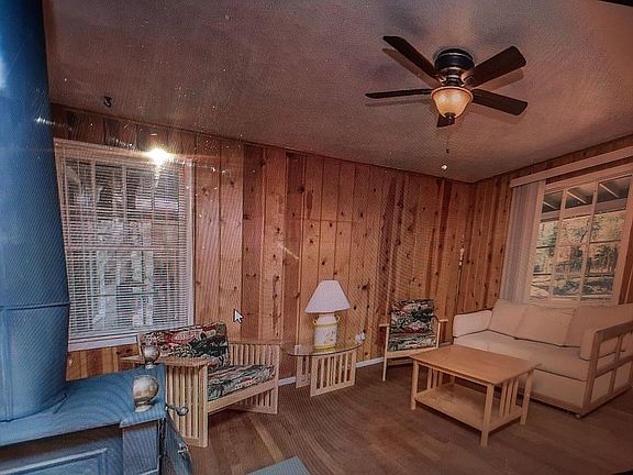 Cute little cabin in the pines with real oak strip flooring, notty pine walls . Home is being sold as is. Gutters need to be replaced. Wall board in the bathroom needs replaced. Exterior of house needs to be painted.