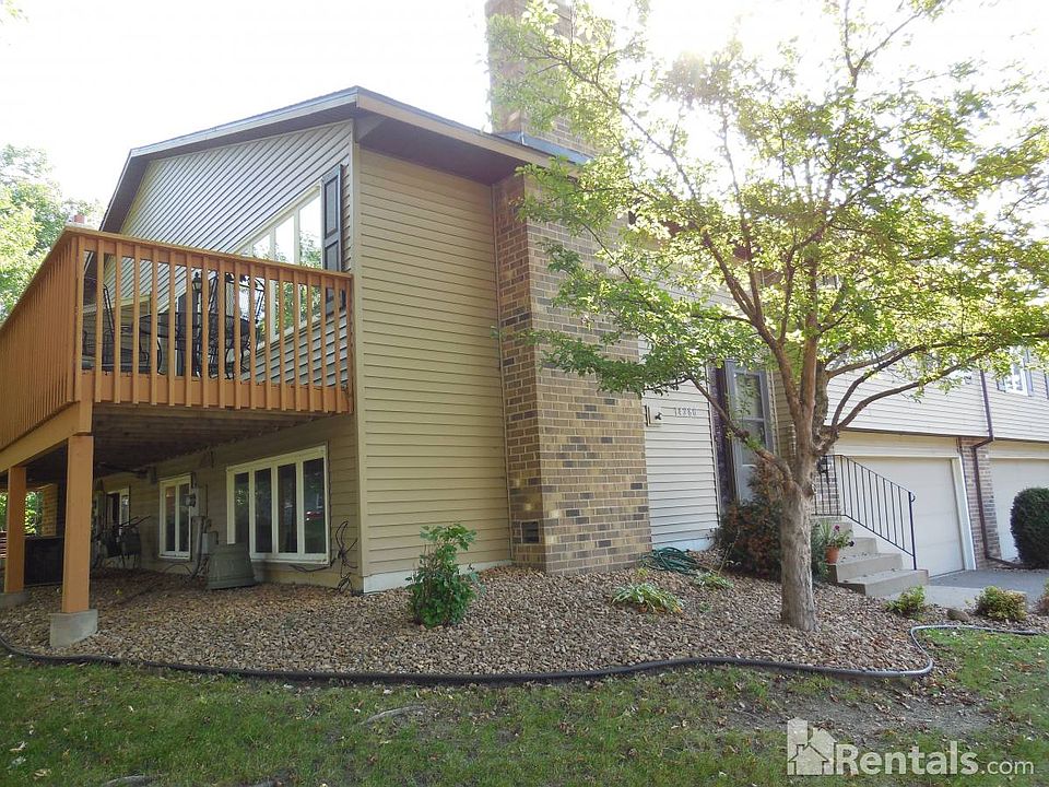 Clean Townhome End Unit. Two BR'S 2 BTH'S. Master BR w/walkin closet. Kit has ample cab's. Din RM w/patio dr to deck overlooking large common ground. Family rm w/fireplc. Two car garage. NO PETS Deposit $1275 Rent $1275 + application.