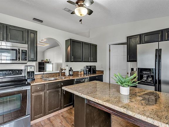 Step inside this light and bright home featuring a spacious great room with vaulted ceilings and a desirable split bedroom floor plan. The kitchen is equipped with granite countertops, stainless steel appliances, and a functional layout that opens to the main living area. Beautiful wood-look tile flooring runs throughout main areas, creating both style and easy care. Enjoy Florida living on the screened-in patio overlooking the large, fenced backyard, plenty of space for relaxing or entertaining. Additional highlights include an indoor laundry area with washer and dryer included. Brand NEW A/C in 2025 and roof was replaced in 2015. This property combines thoughtful upgrades with a convenient Lakeland location. Schedule your showing today!