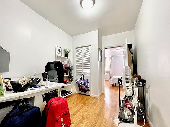 This recently renovated 1 bed features hardwood floors and sunlight throughout, a large eat-in-kitchen with dishwasher, spacious living room, renovated bath, a king sized bedroom with separate entrance, and a smaller room that is perfect for a home office/ studio. Please note, the apartment is currently tenant occupied.