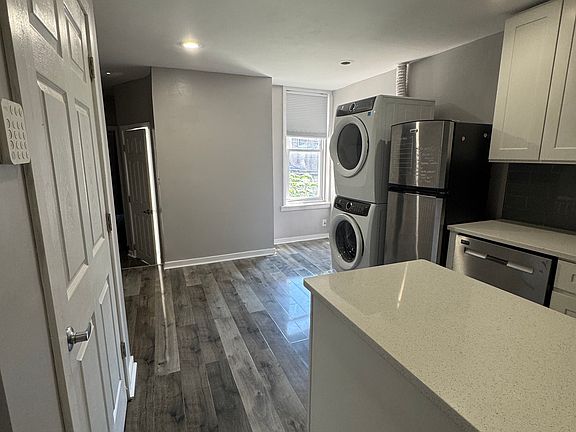Welcome to this beautifully updated 2-bedroom, 1-bath rental in the heart of Brewerytown. This home features a modern kitchen with quartz countertops, high cabinetry for storage, and a functional kitchen island. The front bedroom is filled with natural light and includes a built-in closet system, while the rear bedroom offers a cozy electric fireplace. Hardwood floors run throughout the unit, and the bathroom is finished with porcelain tile flooring and an elegant LED mirror. For added convenience, a washer and dryer are included in the unit. Located just steps from neighborhood dining, cafes, and shopping, this home provides easy access to SEPTA public transportation and is only 15 minutes from Center City. Tenant is responsible for electric utilities. This property is move-in ready and available now. Schedule your showing today!
