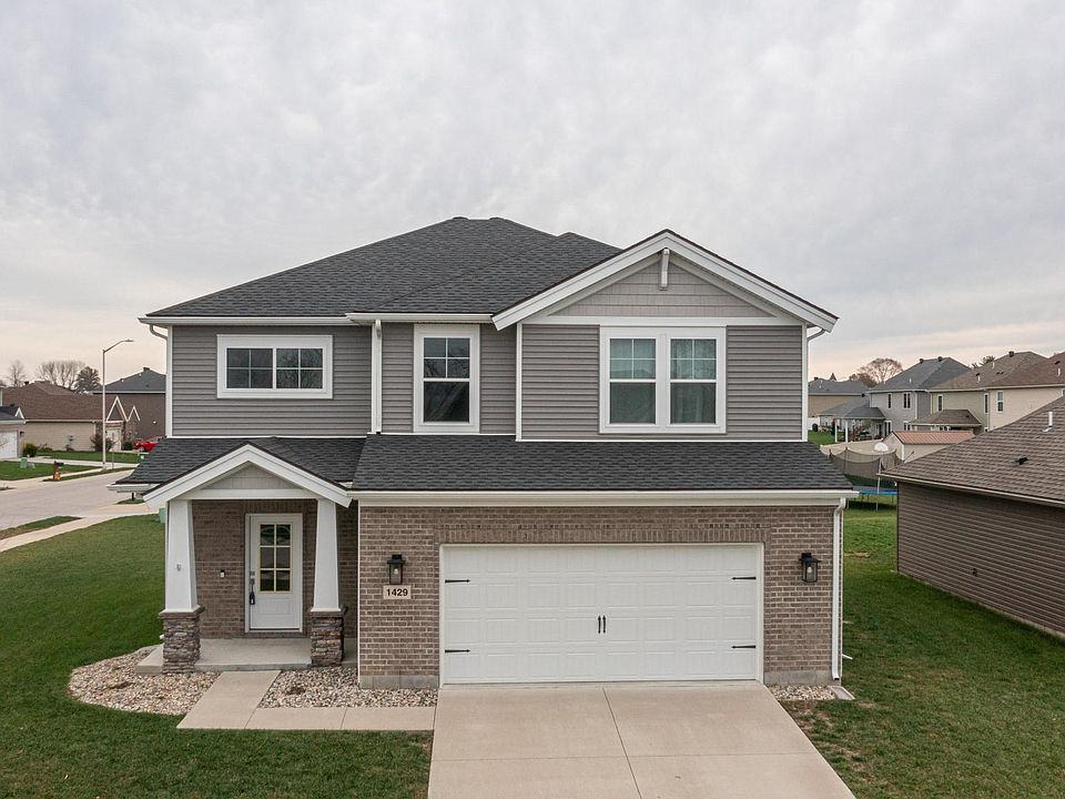 This 4-bedroom, 2.5-bath home in the sought-after Hunters Crossing neighborhood in Huntingburg is ready for immediate possession. The main floor features an open layout with 10-foot ceilings, creating a spacious and welcoming environment. The kitchen is equipped with a large island and plenty of cabinet space for storage, while a half bath and laundry room add practicality. Upstairs, the master suite includes a walk-in shower and a sizeable walk-in closet. The second floor also offers a flexible loft space, three additional bedrooms, and a full bath, with one closet featuring an upgraded organizer. Set on a corner lot, the property includes a covered patio ideal for gatherings. The home comes with window blinds, kitchen appliances, and a washer and dryer, making it a standout in one of Huntingburg’s premier neighborhoods.