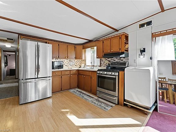 Welcome to 7 Sunvalley! your charming year-round 2-bedroom, 1-bathroom park model mobile home in the tranquil John Bayus Park! This home features a comfortable living area, perfect for relaxing or entertaining guests. The well-appointed kitchen comes with modern appliances, ample counter space and storage, making meal prep a breeze. Both bedrooms offer cozy retreats with plenty of natural light and closet space. Step outside to your private porch, an ideal spot for enjoying your morning coffee or unwinding in the evenings. Located in the desirable John Bayus Park, this home allows for year-round living, providing access to a friendly community with fantastic amenities such as a rec center, a pond for fishing, skating and swimming, and nearby recreational opportunities. Plus, it’s conveniently located near Cambridge, Hamilton, Brantford, and surrounding areas. Don’t miss the chance to make this inviting mobile home your very own!