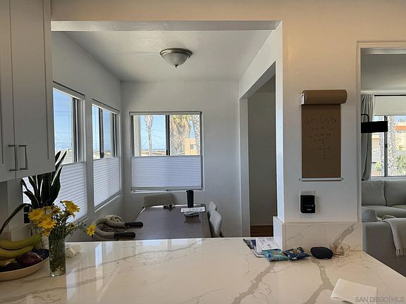 Available now! Beautifully remodeled upstairs 2-bedroom getaway on Sunset Cliffs with no one above or below. Enjoy ocean peeks from the kitchen and living room, plus a wonderful private-like beach right across the street. Includes a 1-car garage, wood floors, dishwasher, and easy access to a nearby laundromat. This bright, private unit sits high on the corner in a quiet 4-unit building known for long-term tenants. Tenant requirements: 730+ credit score, renter's insurance, and responsibility for cable, utilities, and a share of the water bill. $75 per month for a pet. 6- or 18-month lease options available, ideally seeking a long-term tenant.