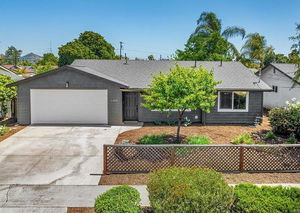 Welcome to 1429 Taylor Avenue, Escondido — a beautifully remodeled 3-bedroom, 2-bath home offering 1,465 sq. ft. of modern living space with a sunroom and a versatile detached bonus room for additional living space. Step inside to an open, airy floor plan that shows like a model home. The gourmet kitchen boasts brand-new cabinets, quartz countertops, stainless steel appliances, and recessed lighting. Recent upgrades include a new roof, water heater, electrical panel, and an epoxy-finished garage floor. Warm wood flooring flows throughout, with ceiling fans in every bedroom. Both bathrooms have been tastefully updated with new finishes, including a private retreat off of primary bedroom. Fresh interior and exterior paint make this home truly move-in ready. Enjoy morning coffee or evening gatherings in the enclosed sunroom, or transform the remodeled shed into a private office, gym, or creative studio. The serene backyard features Washington navel orange and plum tree, plus plenty of room for a pool. This turnkey beauty blends comfort, style, and endless potential — don’t miss this rare opportunity!