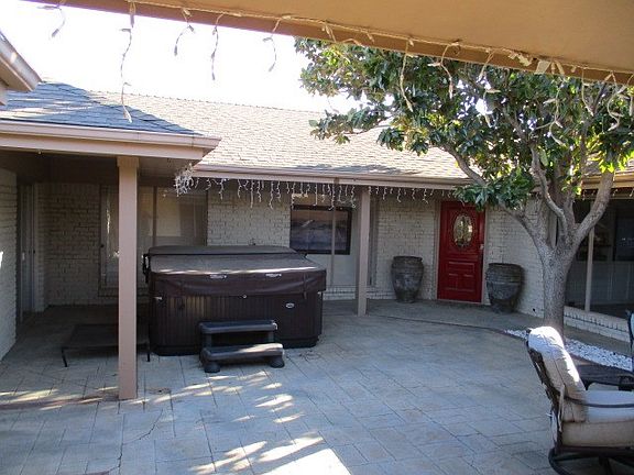 BEST DEAL IN THE NEIGHBORHOOD! EXPECT TO BE IMPRESSED-WELCOMING COURTYARD WITH MAGNOLIA TREE AND HOT TUB. LIGHT AND BRIGHT KITCHEN WITH UPDATED SS APPL AND ICE MACHINE. FLEX ROOM OFF KITCHEN-COULD BE DINING/DEN/OFFICE. LIVING AREA WITH STAINED CONCRETE FLOORING. LARGE J & J BATH. PLENTY OF EXTRA STORAGE, WITH LARGE STORAGE THRU GARAGE.RECENT ROOF. NEW CARPET IN MBR. FURNITURE/W&D/REF. NEGOTIABLE