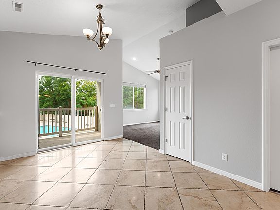 This inviting 3-bedroom, 2-bath home offers comfortable living with vaulted ceilings that create an open, airy feel. The oversized 2-car garage provides plenty of space for vehicles, toys, and extra storage - a rare find at this price point. Located in a vibrant community, the HOA amenities include a clubhouse, pool, gym, and theater room, along with high-speed internet included in the package. Conveniently positioned just minutes from I-15, and surrounded by restaurants and shopping, the location offers both accessibility and lifestyle. With its functional layout, generous garage space, and resort-style community features, this home is a standout choice for buyers seeking comfort and convenience. Owner Agent. Square footage figures are provided as a courtesy estimate only and were obtained from county records. Buyer is advised to obtain an independent measurement.