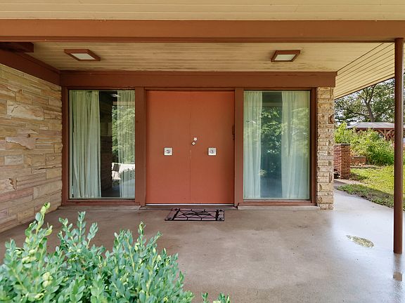 Roman stone masonry fireplaceMain entrance foyerFloor-to-ceiling windowsCantilevered credenzaBuilt into a duneTile floor