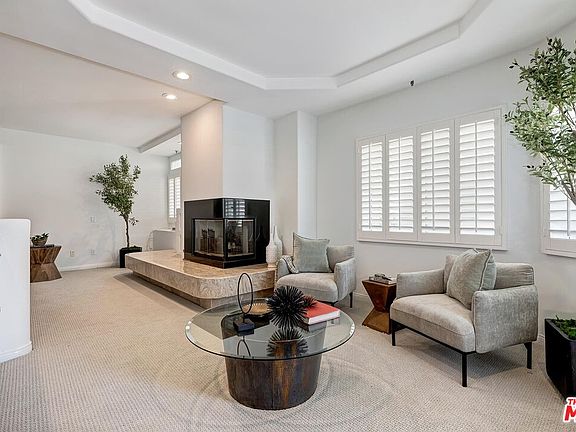 Sophisticated & spacious South of the Blvd. front facing single level unit with treetop views in the heart of Sherman Oaks feels like a home! Step in to the double-door formal entryway to your flowing living room with built-ins and L-shaped fireplace, which leads you to the family room with built-in banquet & access to 1 of 3 private balconies! The sparkling kitchen has plenty of storage & opens to the breakfast nook, which also has access to the Family Room's balcony. The grand formal dining room is huge with French Doors opening to another balcony. Along with an updated powder room, this incredible flow is ideal for entertaining as well as everyday living! The luxurious primary en-suite is very impressive with a huge sitting room with fireplace, 2 separate walk-in closets & 2 access points to a spacious private balcony looking out to Palm trees. The primary en-suite bathroom has double sinks & a separate spa tub & shower. The 2nd bedroom is spacious & has its own full bath just outside the room. This unit has it all - laundry room with side-by-side laundry, chic architectural characteristics & plantation shutters throughout, brand new lush carpet, central AC, plenty of storage including many linen closets, new light fixtures, 2 separate parking spaces & the unit has been freshly painted! The building is an oasis with beautiful "resort-like" common area with Palm trees, pool, spa, sauna, billiards room, gym & inviting lobby.