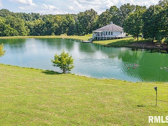 PRIVATE 53 Acres, a rare opportunity to own a Custom built home, Step inside to see Panoramic views of the water, land and wildlife and each season of the year, Open floor plan feels spacious and is full of natural light, per assessor, this home has 1558 square feet of living space, 2 bedrooms, 2 full bathrooms, move in ready, vaulted ceilings, original Hardwood Floors & Kitchen Cabinets hand crafted from the oak timber on site, step right out your door to fish, hunt or relax and enjoy the views of your own private oasis. The land is a mix of timber and open ground, currently in hay production, room dimensions are approximate, due to the curvature of the outer walls, this is MUST SEE property, pictures and words cannot do it justice, Field Grade School, Mt Vernon High School, and is located near Miller and Jaycee Lakes