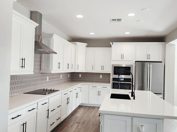 This beautiful home offers an inviting open-concept design that effortlessly connects a spacious gathering room, dining area, and gourmet kitchen with a spacious split floor plan. The primary suite features an ensuite bathroom with double vanities, cultured marble surround and a large walk-in closet. An additional office is perfectly located for privacy and a sizeable laundry room is equipped with storage. Plank tile flooring, quartz countertops, and updated fixtures rounds out this perfect family home. Large corner lot with enclosed in yard with block wall for privacy. Priced competitively to sell fast-act now! Whether you're a first-time buyer or looking to upgrade, this home offers the ideal move-in-ready experience with all the perks of new construction—without the wait.