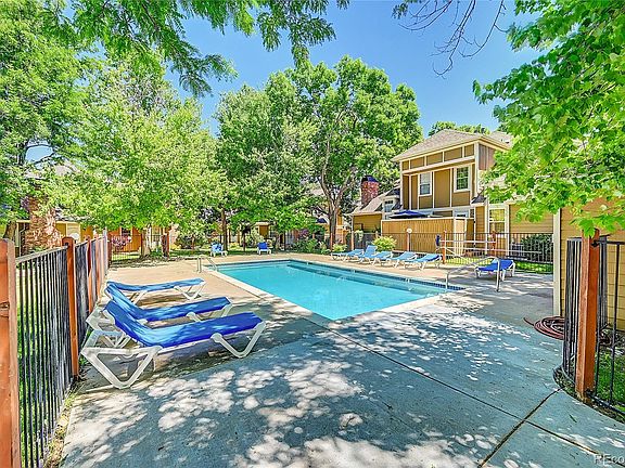 Check out this desirable End unit Townhome in the Le Chateau community, with the front door facing the pool! Perfect location near the Iliff light rail station and I-225 for easy access to get around the city! Nearby you will find some great places to dine and shop. Minutes away from medical centers, grocery stores and more! This 2 story Updated/Remodeled townhome features a spacious open floorplan with vaulted ceilings, wood burning fireplace, main floor bedroom, and updated bathroom and a laundry closet that includes a washer and dryer! The kitchen has been updated with Corian countertops, lots of storage, refinished cabinets, a pantry and access to your very own private deck! Upstairs you will find another bedroom, updated bathroom and a loft. Le Chateau community has an outdoor swimming pool and surrounding green belts.