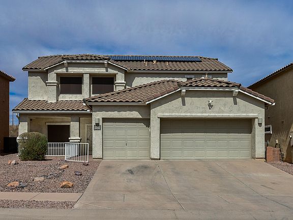 Amazing home that is move in ready with new interior paint, new carpet that this home could be a multi-generational home with primary bedroom downstairs and 5 bedrooms upstairs with a huge loft. Room for everyone. This Savana model built by Pulte Homes features living/dining with wood laminate flooring, large and spacious kitchen with Stainless Steel appliances, upgraded cabinets with pull-outs, walk-in pantry, quartz counter-tops, custom center island with breakfast bar, gas stove, microwave, and double sinks. Family room off kitchen and is wired for surround sound. Screened in covered patio area, pool, dog run with faux grass, privacy with no neighbors behind, backs up to desert, insulated 3 car garage and much, much more. Don't miss this wonderful home.