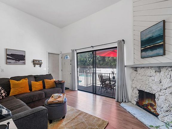 Step into this spacious, move-in ready condo with an open loft feel in the heart of Sylmar! As you enter, you’re welcomed by a bright and inviting living room—perfect for hosting family and friends. A cozy fireplace adds warmth and charm, while a sliding glass door opens to your private patio, letting in a refreshing breeze and offering views of the common grounds, sparkling pool, and relaxing spa. Just a few steps up, you’ll find a loft-style dining area with plenty of room to enjoy meals comfortably. The dining space flows seamlessly into the well-appointed kitchen, complete with ample cabinet space to store all your cooking essentials. A convenient half-bathroom is also located on this level—ideal for guests. Upstairs, you’ll discover two generously sized bedrooms, each with its own private en-suite bathroom for maximum comfort and privacy. Between the bedrooms is a laundry area, making laundry days easy and efficient. The primary suite boasts abundant closet space and a thoughtful layout that allows for a private workspace or reading nook. Additional highlights include central A/C, high ceilings, and a spacious 2-car garage. This home offers the perfect blend of comfort, convenience, and community amenities—all in a great Sylmar location.