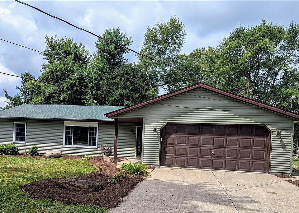Welcome home to first floor living with a private country atmosphere close to the center of town. This home features a fully remodeled kitchen with a double wall oven, brand new appliances, cabinets and wonderful views of the back yard. New floors are throughout the home along with new doors, hardware, windows, trim and fresh paint. This home has 3 bedrooms, a sitting room, separate dining area, first floor laundry and a second living area that leads to the back yard through a large sliding patio door. The main bedroom features an en-suite and large walk in closet. Tons of natural light fills this home. The patio offers the perfect entertaining space for summer cookouts or just relaxing and enjoying the sounds of the water trickling in the water feature. All you need to do is move in! All appliances stay, including the washer, dryer and additional freezer in the garage. New roof (2023) New siding (2023) New windows (2024) New flooring throughout (2024) New kitchen appliances (2024) New kitchen (2024) New doors/hardware/trim/lighting (2025) New pond pump/heater (2024)