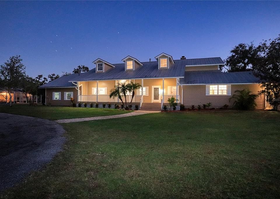 This Majestic Country Estate that preserves that which was and which is old Florida. Centuries old Oak trees making this estate revered. Tranquil and Serene. Country Living where the wildlife is in abundance, a contribution from the 37,000 acres of park that lay behind. The parcel is zoned A (agriculture). Wildlife commonly seen are Deer, Turkey, Pigs and amazing birdlife. The perfect property to bring your animals, toys, or become self sustaining and grow your own garden. If you love living in the heart of nature, you have found your piece of Florida, only 20 minutes from the nearest Publix and Restaurants. This Estate has Two Homes. The main house with 4 bedrooms and 3 bathrooms. Two bedrooms are Upstairs - First floor has 1 Bedroom as well as the Master Bedroom that has a large Sauna/massage room off the master bathroom and has views of the pond and Mossy Oaks. An oversized farmhouse kitchen, the main house has a two car garage attached to the house, with entry though a large laundry room that has a separate exit/entrance to an enclosed fenced area that could be used for a garden or pets. The large screened in covered back patio extends the length of the home taking in the serenity and water view of the very large pond the perfect spot to capture the essence of the land and listen to nature. The Pool House/Guest house has 1 bedroom En-suite , with a second full bathroom with pool access, in addition to the Outside Pool shower. Large open plan design, with bar area and a separate gym area. A two car garage attached as well. totaling 4 Car Garages. From the Pool House - Walk out French Doors to the Resort Size Pool, Wading pool and 16 seat hot tub. With fiber Optics provided by Myakka technology working from Home is a an option. To truly appreciate the peace and tranquility, set up an appointment and experience the beauty that awaits. Use this reduction in price to make this home exactly how you want it.