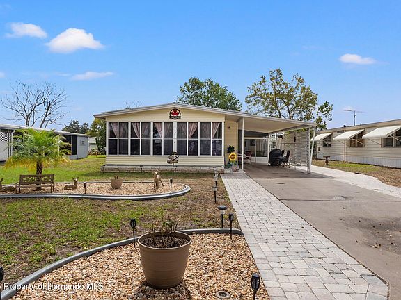 CASH ONLY - Updated double-wide manufactured home in the Brookridge 55+ gated community. Situated on a 6,000 sq. ft. lot, this 1,152 sq. ft. home offers 878 additional sq. ft. of porch and workshop space. The home features luxury vinyl plank flooring with ¾-inch plywood subfloors, updated kitchen cabinets and countertops, and a drywalled interior, including ceilings. The primary suite includes a walk-in closet, and both bathrooms have been updated.