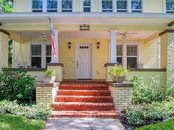 Don't miss your chance to live in this quintessential Old Northeast home just north of Downtown St. Petersburg. The wide front porch is inviting and cool, complete with porch swing, making it the perfect place to entertain. Enter into an expansive living room with newly updated gas-burning fire place, crown molding and refinished original hardwood floors. Living room opens to the formal dining room and a small den with lots of natural light, brick detail, and custom two way blinds. The large formal dining room sits 10-12 guests comfortably and features a gorgeous Pottery Barn chandelier. Continue on to the newly renovated kitchen (2020), featuring tons of storage in the custom cabinetry, stainless steel appliances, marble backsplash, granite countertops, and giant pendant. Eat in space features a full wall pantry and coffee bar. Laundry with a full-size stackable washer and dryer is just off the kitchen space with full storage closet. Guest bedroom with lots of natural light is down the hall, as well as a marble-tiled bath with glass shower enclosure. Upstairs are three guest bedrooms with hardwood flooring throughout and custom closets, and a shared hall bath with dual sinks and a tub/shower combination. The expansive master bedroom features a custom walk in closet, and a secondary smaller closet off the sitting area. En-suite master bath has split sinks and a tub/shower combination. Home features a newer roof (2018), newer windows (2012), replaced downstairs HVAC (2020), refinished real hardwood floors, and custom plantation shutters throughout. Backyard features mature fruit trees, paved patio, detached garage, and detached (separate) workshop. There is plenty of room for a pool or outdoor kitchen to make this the ultimate entertaining space. Make your private showing appointment today!
