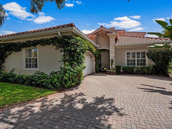 H.15962 DISTINCTIVE DESIGN MADE FOR ENTERTAINING. This home has all the elements for enjoying the outdoor Florida lifestyle. The voluminous lanai with undercover dining and complete outside kitchen overlooks a panoramic lake view and fountain. A spiral staircase takes you up to an oversized balcony with an eagle eye view of the sunrise over the lake and opens thru French doors to the one of the two master bedroom suites. It's showtime in the comfortable media room and on the same level are two personal offices. On the ground floor you will find a large living room with fireplace, kitchen and breakfast nook, a warm dining area, another master bedroom suite, a guest bedroom and a den with bookshelves and two murphy beds. This home is located on a quiet cul-de-sac with a side facing garage and there is a lovingly tended garden with signature plantings. Fountainhead is a popular beautifully landscaped gated community close to shopping, the Naples Beach and the Regional Community Hospital.