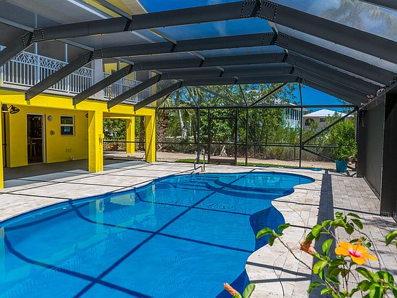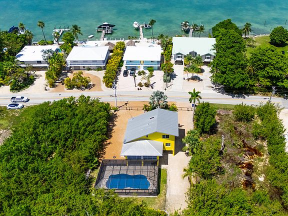 This spacious home on two lots in Duck Key is appealing for a weekend getaway or your new Florida Keys residence. With cathedral ceilings and expansive living areas, it's designed for comfort. The AC compressor and air handler were replaced just two years ago, and the interior has been freshly painted with professionally cleaned carpets.Experience breathtaking sunset views from the front screened patio or the back patio overlooking the pool, complete with a large wet bar. Featuring three bedrooms and an open loft ideal for an office or play area, this home offers great versatility. Tumbled marble flooring beautifully complements the cozy carpeting in the bedrooms, and elegant white wood interior shutters enhance the interior. A durable metal roof adds to the home's longevity.The beautifully landscaped yard is fully fenced and equipped with an irrigation system for easy upkeep. The generous pool features a saltwater system and a combination heating/cooling setup, all within a screened enclosure that includes an outdoor shower. This property truly feels like an oasis, providing privacy on all three sides.It's easy to show--come see this gem located directly across from the stunning open water views of Tom's Harbour!