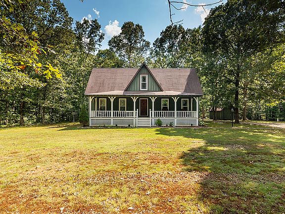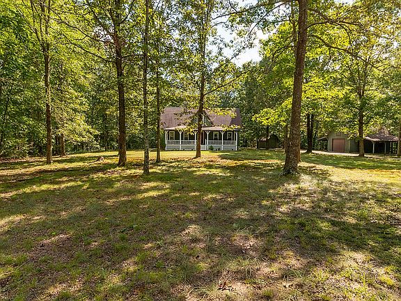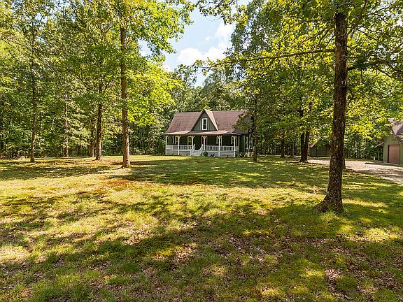 Charming, custom cottage home, rustic, board and batton on 10.12 acres. Secluded, yet 5 minutes from shopping and 2 miles from Natchez Trace Parkway. The well built, well maintained 3 bedroom 2 bath home has hardwood throughout the main living area and carpet in the bedrooms. The master suite has a walk in closet with custom shelves, the bath features a large claw foot tub. The deep front porch spans the length of the house, allowing you to enjoy the serenity of nature surrounding you. The home also features a spacious detached garage/shop with a full loft and additional covered parking for 2 vehicles. Also on the property is a 10x16 garden shed. The home has new energy efficient windows, new heat and air unit and a whole home surge protector.