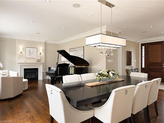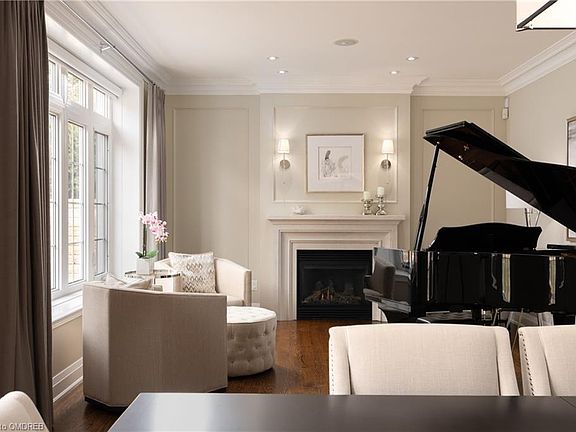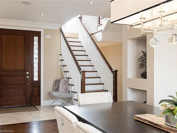 Located in the trendy Harbour District of downtown Oakville this Gren Weis designed home. The open concept Living Room/Dining Room, with designer finishes by Barnard & Speziale, features custom paneling around f/p and stone feature wall with art niche in the dining room. Showstopping Misani kitchen (2019) integrating a Caesarstone waterfall countertop on the island, white cabinetry with walnut accents. Top-of-the-line Sub-Zero, Dacor and Bosch appliances. The kitchen flows into the Great Room, with its soaring 19' ceiling, & features a floating f/p with mantle and custom mill work. Private main floor office, complete with built-in closet organizer to handle a printer and supplies. An oversized mudroom/laundry room, with inside garage access. Not to mention the laundry chute from the 2nd level! A large window floods the staircase to the 2nd level with natural light. Principal bedroom with a custom platform bed and leather headboard. The principal suite also features unique accent lighting, balcony overlooking your backyard, large W/I closet with organizers, 5 pc ensuite with separate vanities and large tub to relax in at the end of the day. Three bedrooms and two additional bathrooms complete the upper level. Finished lower level with a home theatre area complete with gas f/p and in-wall surround sound for the ultimate theatre experience. Further features include a recreation room area, wine cellar with 2 wine fridges, exercise room, kitchenette with full sized fridge, sink and microwave as well as a fifth bedroom with 3 pcs ensuite. Step outside to your custom backyard oasis, featuring 3 waterfalls and a 2-sided f/p. An outdoor shed with proslat storage system compliments the architecture of the home. Thousands spent in renovating this home with designer finishes. Live the harbour life of being steps to downtown Oakville's shops, Kerr Village, restaurants, marinas, parks, the new lakefront promenade and more!