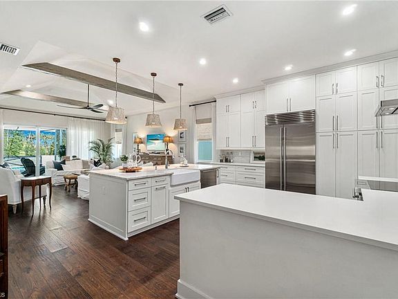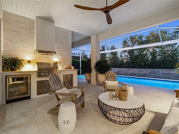 Welcome to this stunning 3-bedroom, 3.5-bathroom home, located in the exclusive Seahorse Cottages of Cambria, a charming community of cottage-style residences in Naples. Perfectly positioned near world-class dining, shopping, entertainment, and Naples’ renowned white-sand beaches, this home embodies the ultimate Florida lifestyle. Step inside to discover a light-filled, open floor plan adorned with elegant wood beams, rich wood flooring, and custom blinds and drapes that add a touch of sophistication. Every detail has been thoughtfully upgraded, from the custom closets to the farmhouse sinks in the kitchen and laundry rooms, and the indulgent soaking tub in the primary ensuite. Designed for both style and convenience, the home features a state-of-the-art security system and an attached 2-car garage with epoxy flooring, an electric car charging station (wired for a second), and a chic trellis accent above the garage door. The expansive chef’s kitchen is a true centerpiece, offering top-of-the-line appliances, a generous butler’s pantry, and ample space for culinary creativity. Outdoor living is equally impressive, with a spacious lanai boasting a travertine deck, an outdoor kitchen, and a luxurious swimming pool with an integrated spa, automated saltwater system, and pool heater. Thoughtful exterior enhancements include buried downspouts for efficient storm water management and charming pea gravel pathways leading to the pool entrances. This meticulously crafted home is a perfect blend of luxury, comfort, and elegance, offering an unparalleled living experience in one of Naples’ most sought-after communities.