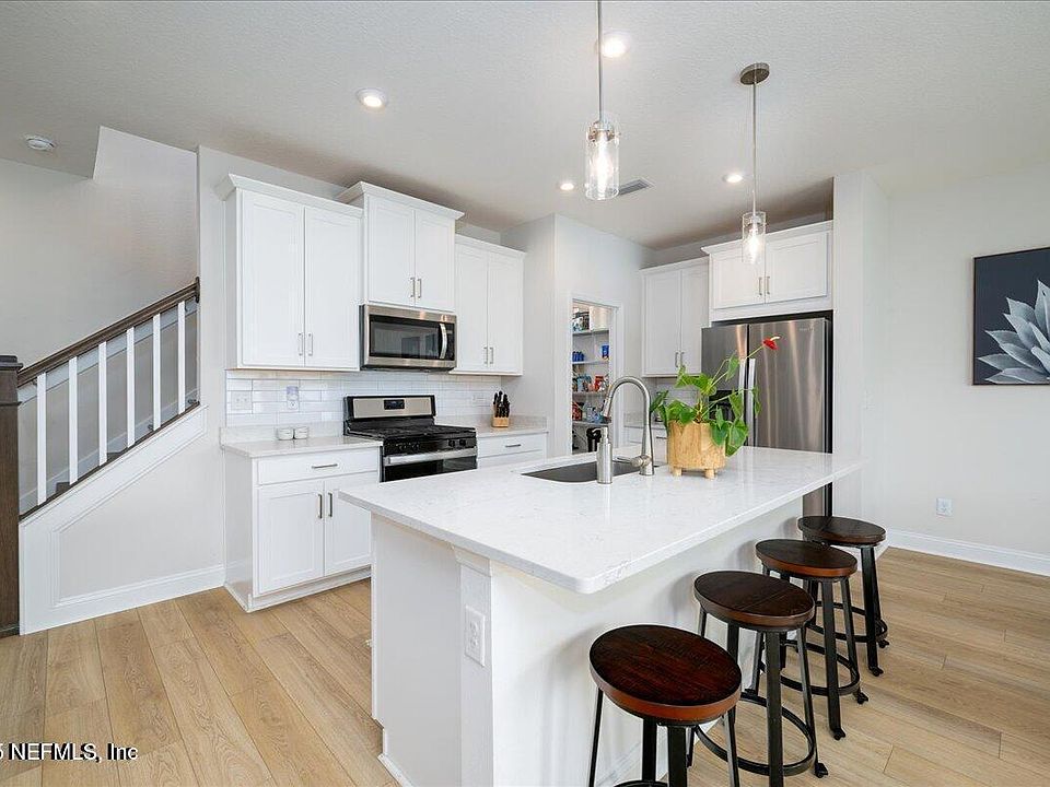 Why wait for new construction when this move-in ready home is loaded with upgrades and priced $43K below appraised value! Short sale price approved. Located in the highly sought-after Rivertown community within the top-rated St. Johns County School District, residents enjoy resort-style amenities including pools, café, dog parks, and walking trails. This 4BR/2.5BA two-story features an open-concept main floor with modern backsplash, updated lighting, and stylish accents. Upstairs offers 3 bedrooms, 2 baths, laundry, and a versatile bonus space—ideal as a media room, office, or 4th bedroom. The primary suite boasts a garden tub, walk-in shower, and spacious walk-in closet. A fully fenced backyard completes this beautiful home with room for a pool. Welcome to Rivertown living! What's Near?