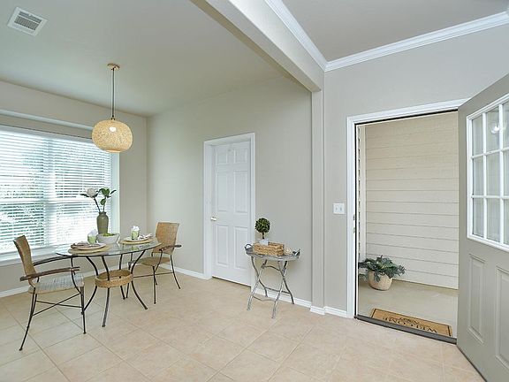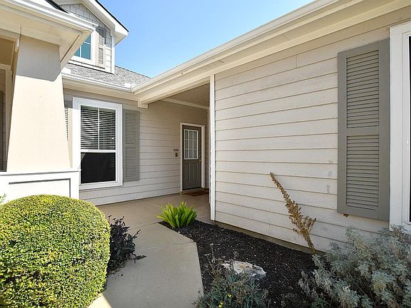 Enjoy pleasant views FRONT AND BACK at this nicely updated 'Monterey' cottage (individually owned 1/2 duplex,) as part of Sun City's 'lock & leave' program where year-round lawn care is included in the stated annual dues. Light wood flooring in the living area along with new carpet in bedrooms, new ceiling fans and neutral paint throughout combine to provide a pleasing palette for feathering your nest! Quartz counter tops, updated backsplash, white cabinets and appliances add sparkle to the kitchen as it opens to the combination living/dining room with views of the woods out back. Primary and guest bedrooms/baths are nicely separated in this plan and a nook at the front of the kitchen can serve as you wish. Roof 2020. Don't miss this nice package! Come live your best life in Sun City Texas!
